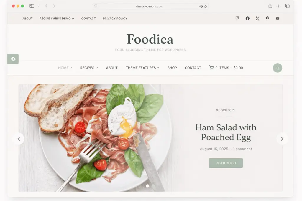 Foodica PRO is a specialized theme designed for food blogs, recipe websites, and culinary magazines.