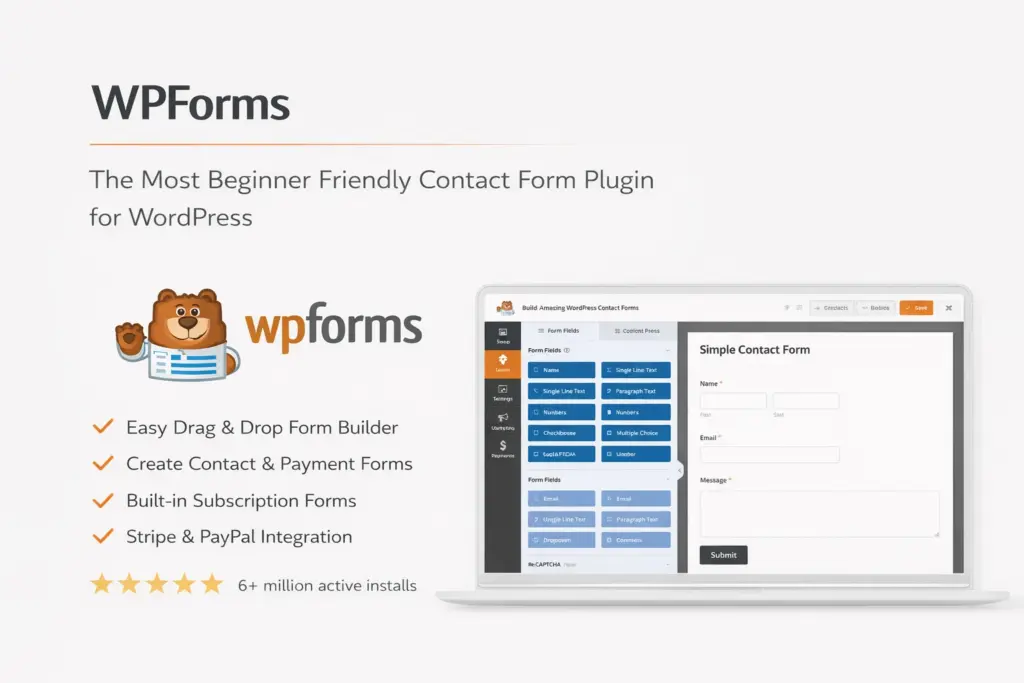 WPForms is a great choice for beginners and businesses that want to build forms quickly without technical complexity.