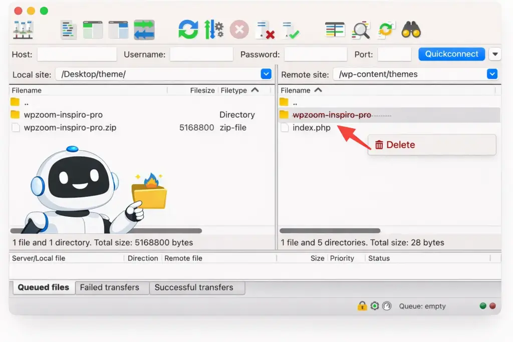 In these situations, you can remove the theme manually using FTP (File Transfer Protocol).