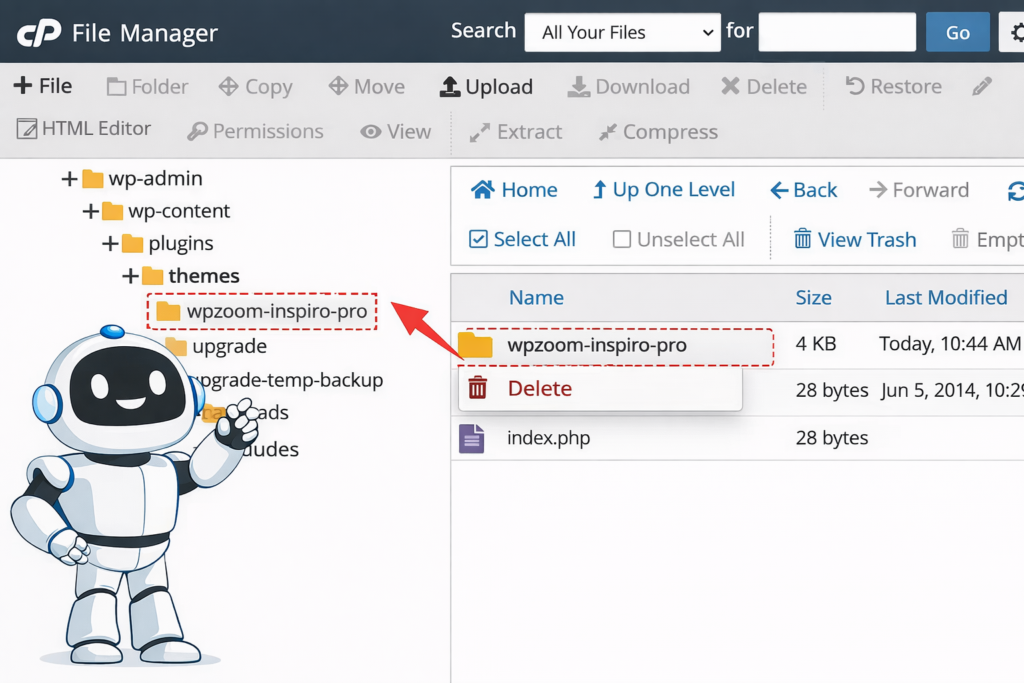 Another method for deleting a theme is using your hosting control panel, usually cPanel. This option works similarly to FTP but allows you to manage files directly through your browser.