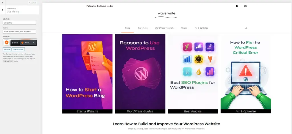 - Classic → Customize → Site Identity