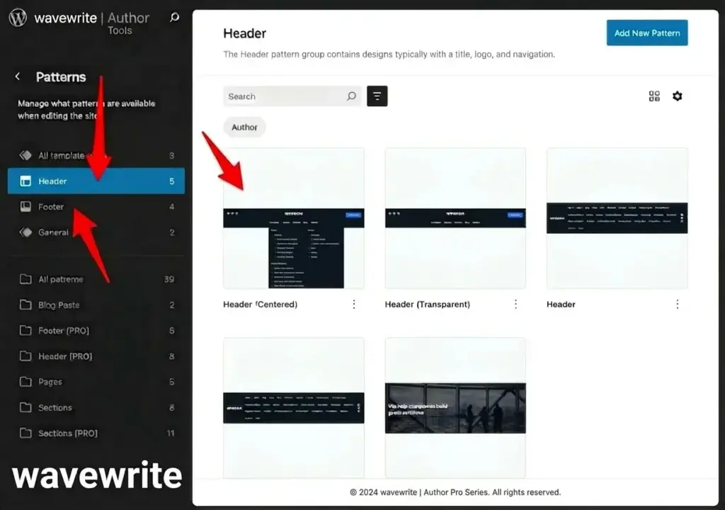 - Go to Appearance → Editor → Patterns