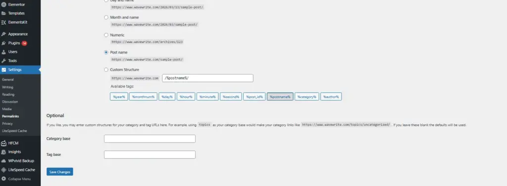 - Go to Settings → Permalinks in the WordPress dashboard.