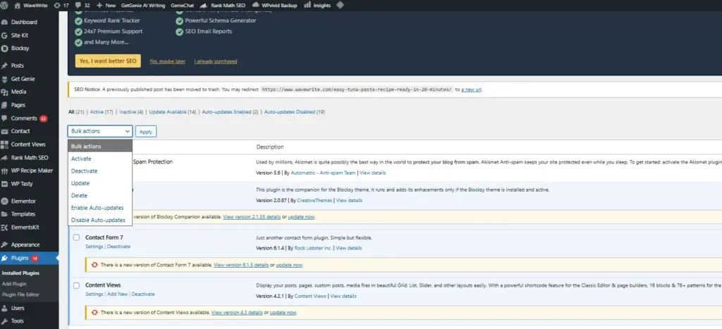 - Go to Plugins → Installed Plugins