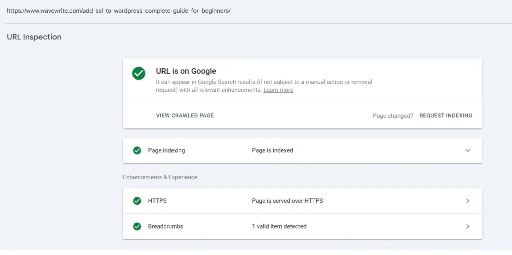 - If the page is not indexed, or if you updated it, click Request Indexing