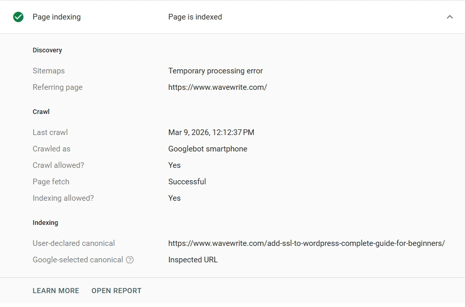 - Google Search Console URL Inspection Tool